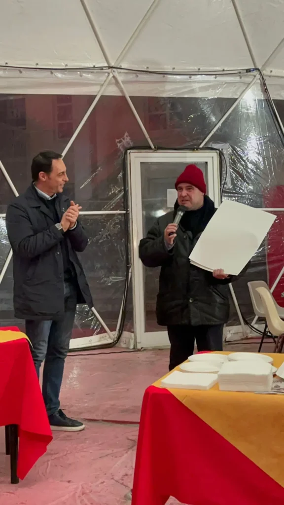 Uno dei momenti più significativi e toccanti dell’intera kermesse si è vissuto all’interno della suggestiva sfera-dome, dove l’allegria dei ragazzi della Fondazione “Don Cosimino Fronzuto” ha letteralmente contagiato i presenti. Con la loro simpatia, i ragazzi, accompagnati dal Presidente della Fondazione Davide Piras e da diversi componenti del direttivo, hanno portato in scena il “Sciuscio”, il tradizionale canto augurale di Gaeta, riempiendo l’aria di note e folklore.