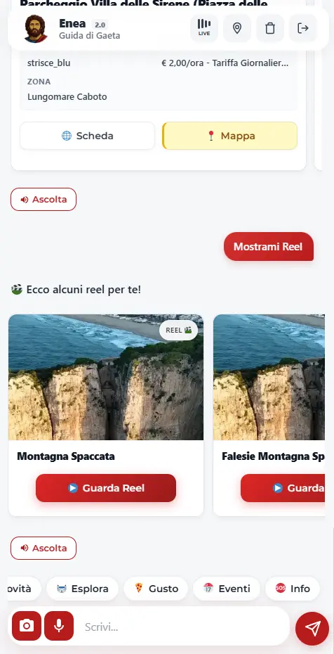 - Video Reels Integrati: Chiedi di un evento e Enea ti risponde con un video verticale stile TikTok/Instagram.