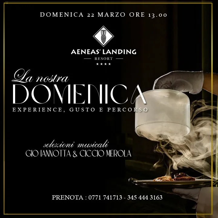 Vivi la “Nostra Domenica” all’Aeneas’ Landing Resort: un’esperienza all’insegna del gusto. Ad accompagnare l’evento ci saranno le selezioni musicali di Gio Iannotta & Ciccio Merola. Info e prenotazioni: 0771 741713 – 345 444 3163.