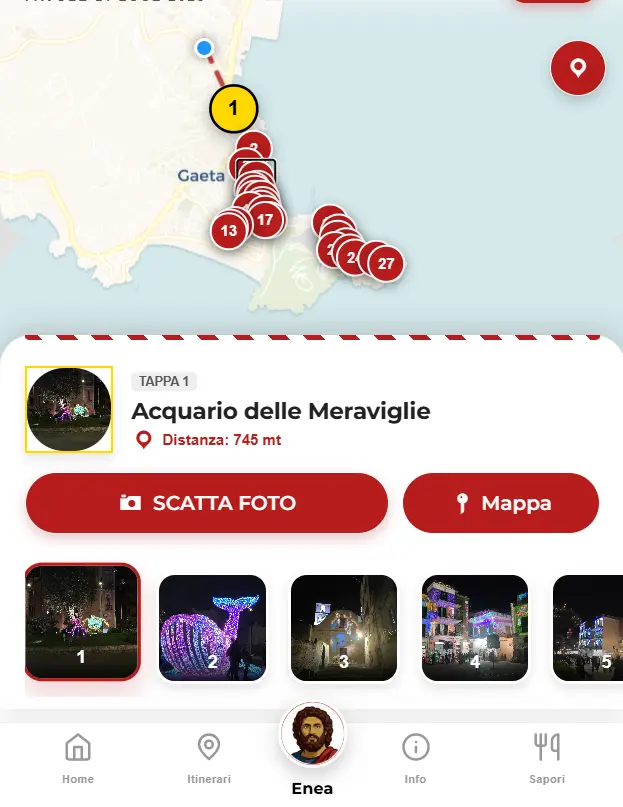 Tecnicamente parlando, Scopri Gaeta è una WebApp Progressiva integrata con API di ultima generazione. È veloce, sicura, non richiede installazioni (rispettando la memoria del tuo telefono) e non ti traccia in modo invasivo (rispettando la tua privacy).